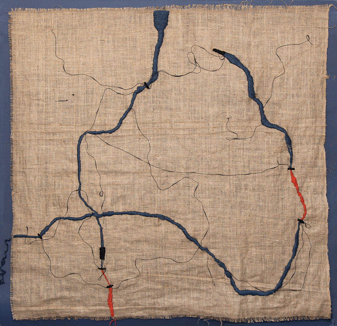 La mostra presenta trenta opere fra pitture, teli e teche, astrazioni geometriche e segni informali di rotte di navi, sensazioni e percorsi di mare seducenti e tortuosi, immagini della vita dell’uomo. La mostra presenta colori profondi ed espressivi, blu cangianti delle profondità degli abissi marini, verde e celesti che si incrociano come i riflessi del mare.