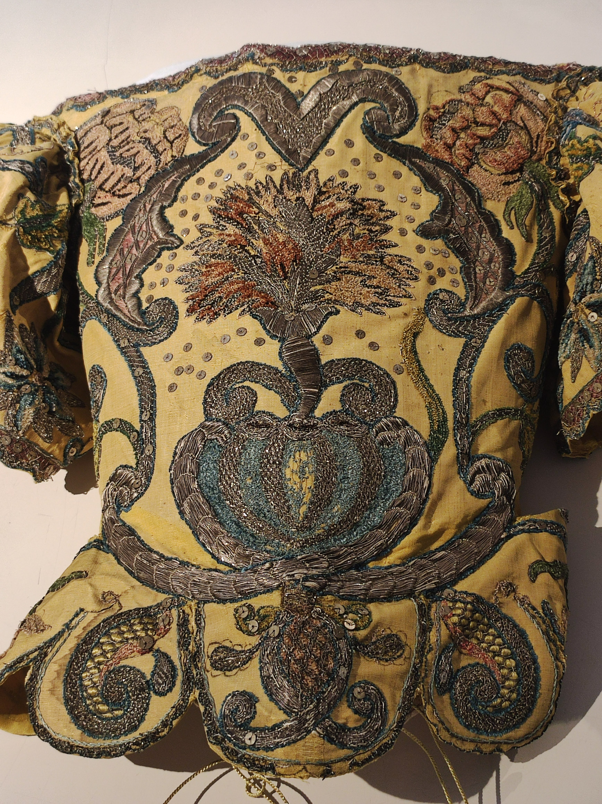 Spicca anche una serie di preziosi ricami a riporto del XVI e XVII secolo della Collezione Tessile di Palazzo Reale e alcuni quadri a ricamo dell’artista Marianna Elmo, attiva nel XVIII secolo.
