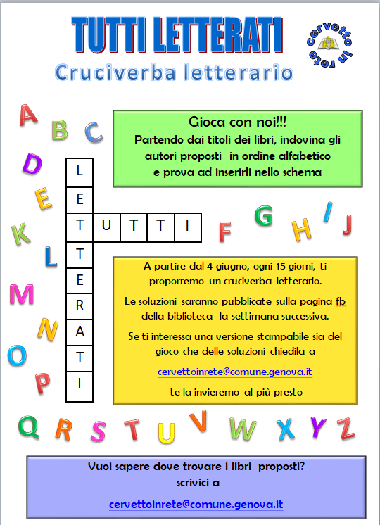 Sarà inviata a tutti i lettori della Biblioteca Cervetto e a tutti coloro che ne faranno richiesta una copia stampabile sia del gioco che delle soluzioni.