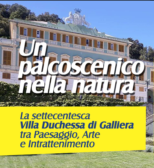 Sabato 14 settembre, a partire dalle 15.30, a Villa Duchessa di Galliera a Voltri, il parco storico più esteso della Liguria, ci sarà un' anteprima delle Giornate Europee del Patrimonio / European Heritage Days, con l'evento, UN PALCOSCENICO NELLA NATURA – La settecentesca Villa Duchessa di Galliera tra Paesaggio, Arte ed Intrattenimento, patrocinato da Comune, Regione e Municipio VII Ponente.
