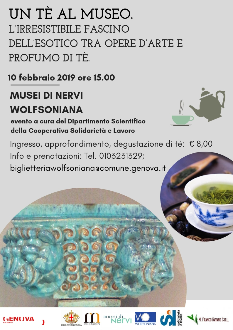 A grande richiesta la Wolfsoniana dei Musei di Nervi, in collaborazione con il Dipartimento Scientifico della Cooperativa Solidarietà e Lavoro e con l’azienda M. Franco Ravano S.r.l., ha deciso di proporre nuovamente l’evento “Un tè al museo. L’irresistibile fascino dell’esotico. Tra opere d’arte e profumo di tè.”