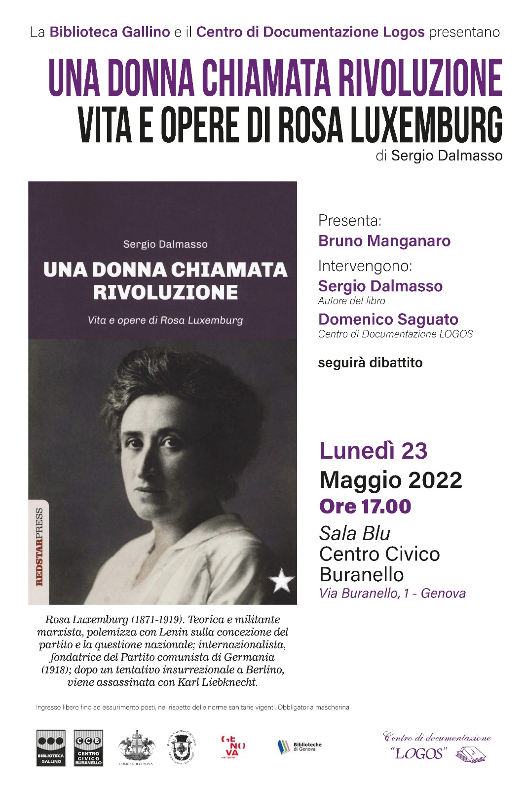 Bruno Manganaro presenta il libro “Una donna chiamata rivoluzione - vita e opere di Rosa Luxemburg” di Sergio Dalmasso che sarà presente all’evento con Domenico Saguato del Centro di Documentazione Logos