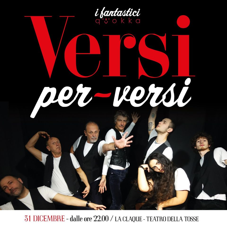 E' lo spettacolo “Versi-per-Versi” con protagonista il collettivo di comici, attori e musicisti I fantastici Quokka. Uno show sulle perversioni che alterna momenti di teatro, cabaret, musica e stand up per salutare il 2021 e attendere insieme l’arrivo del nuovo anno. A fine spettacolo è in programma un brindisi con panettone e musica.