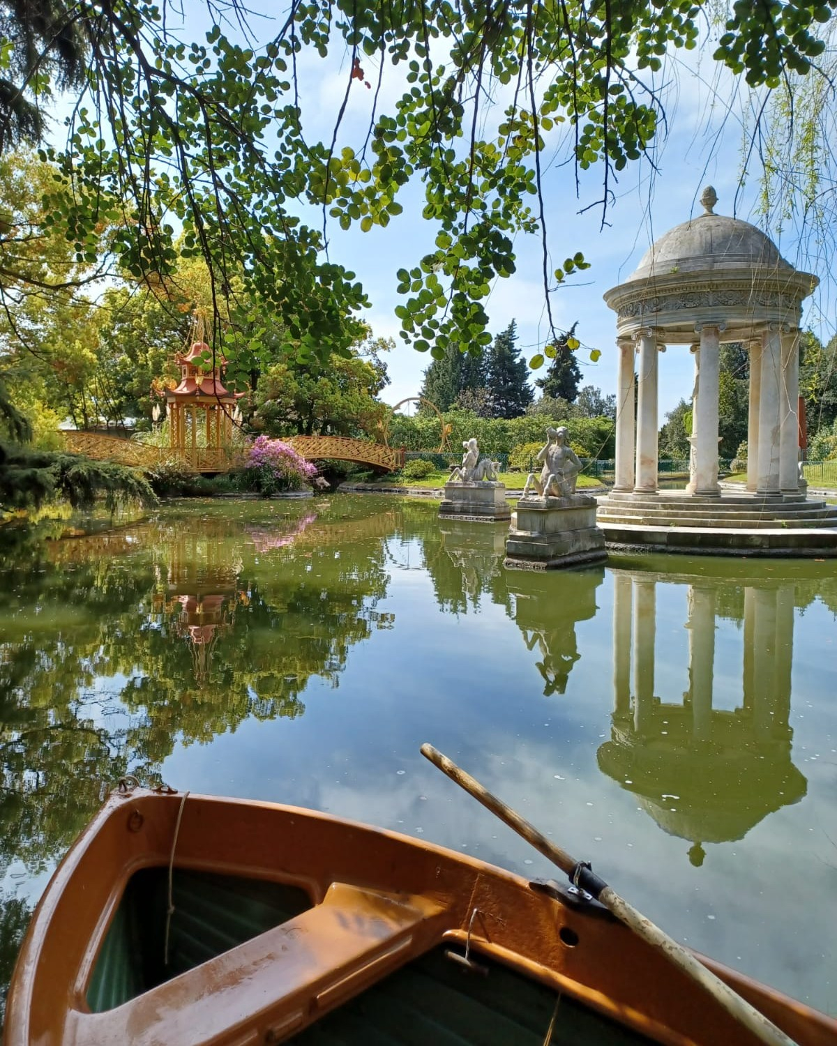 Nei mesi di luglio e agosto, la domenica dalle 14 alle 18, i visitatori possono provare la meraviglia di solcare le acque del Lago Grande, passando vicino al Tempio di Diana e sotto il Ponte Cinese, così come accadeva nella seconda metà dell'Ottocento.