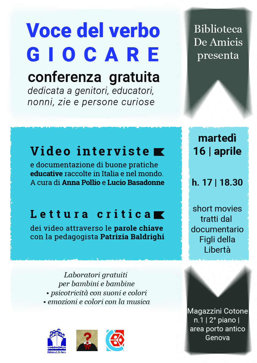 Attraverso parole chiave e short movies si parlerà di infanzia, di educazione, di gioco e di quanto questa sinergia sia importante per la vita di tutti, ad ogni età.