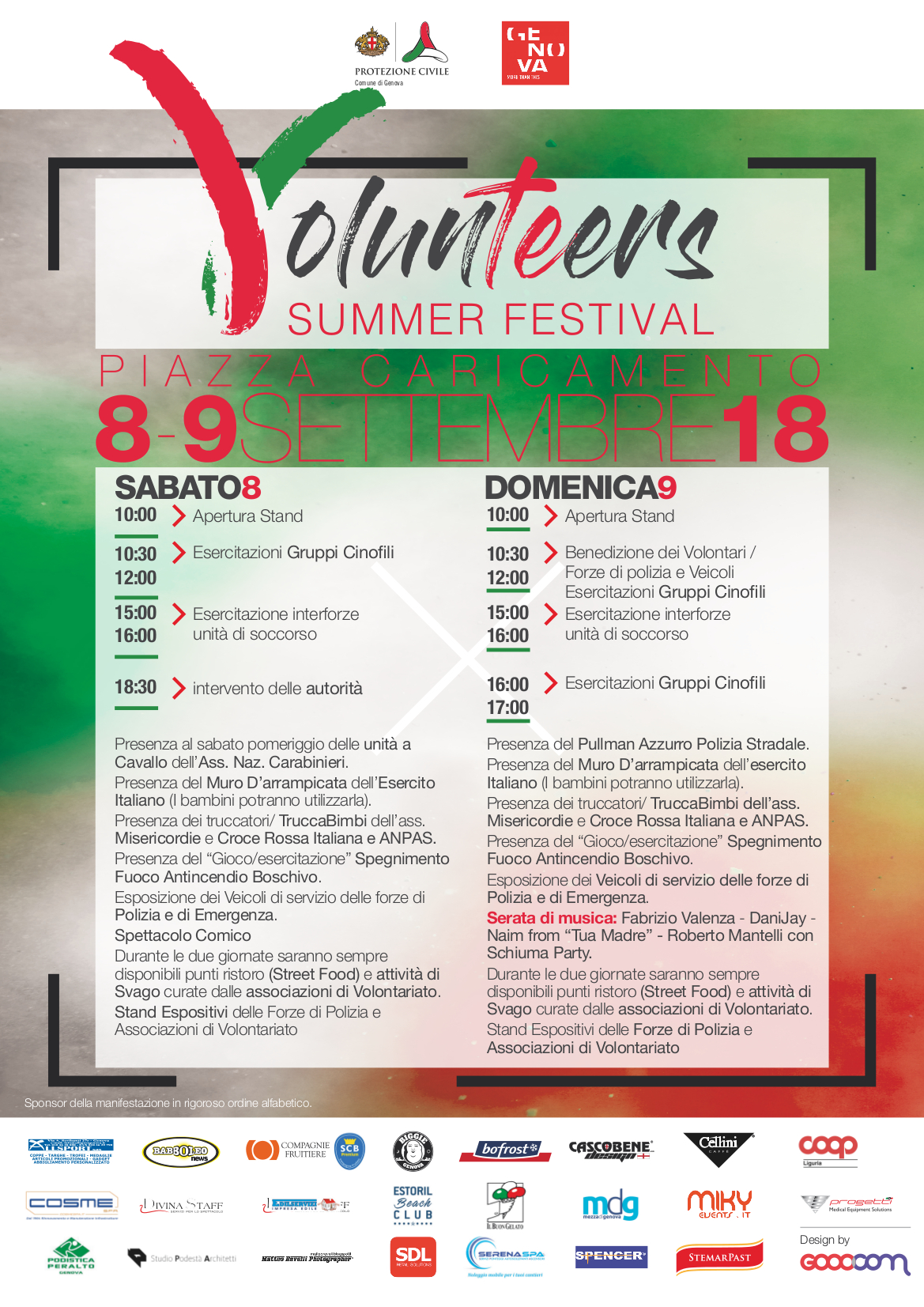 A seguito del tragico evento del crollo di Ponte Morandi, la manifestazione “Volunteers Summer Festival” è stata rinviata e sarà realizzata in primavera.