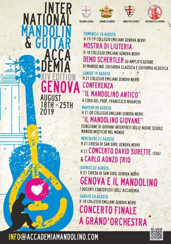 Gli spazi che accoglieranno dal 18 al 25 agosto la XIV edizione sono, per la seconda volta consecutiva, quelli del Collegio degli Emiliani di Nervi, dotati di un fascino architettonico e paesaggistico unico, condizione non trascurabile per un appuntamento dove impegno, estro e creatività hanno un peso rilevante. L'Accademia Internazionale di Mandolino e Chitarra rappresenta un impegno che va oltre la tradizionale master class, per diventare un momento formativo a tutto tondo, oltre che di condivisione personale, profondamente arricchente per tutti.