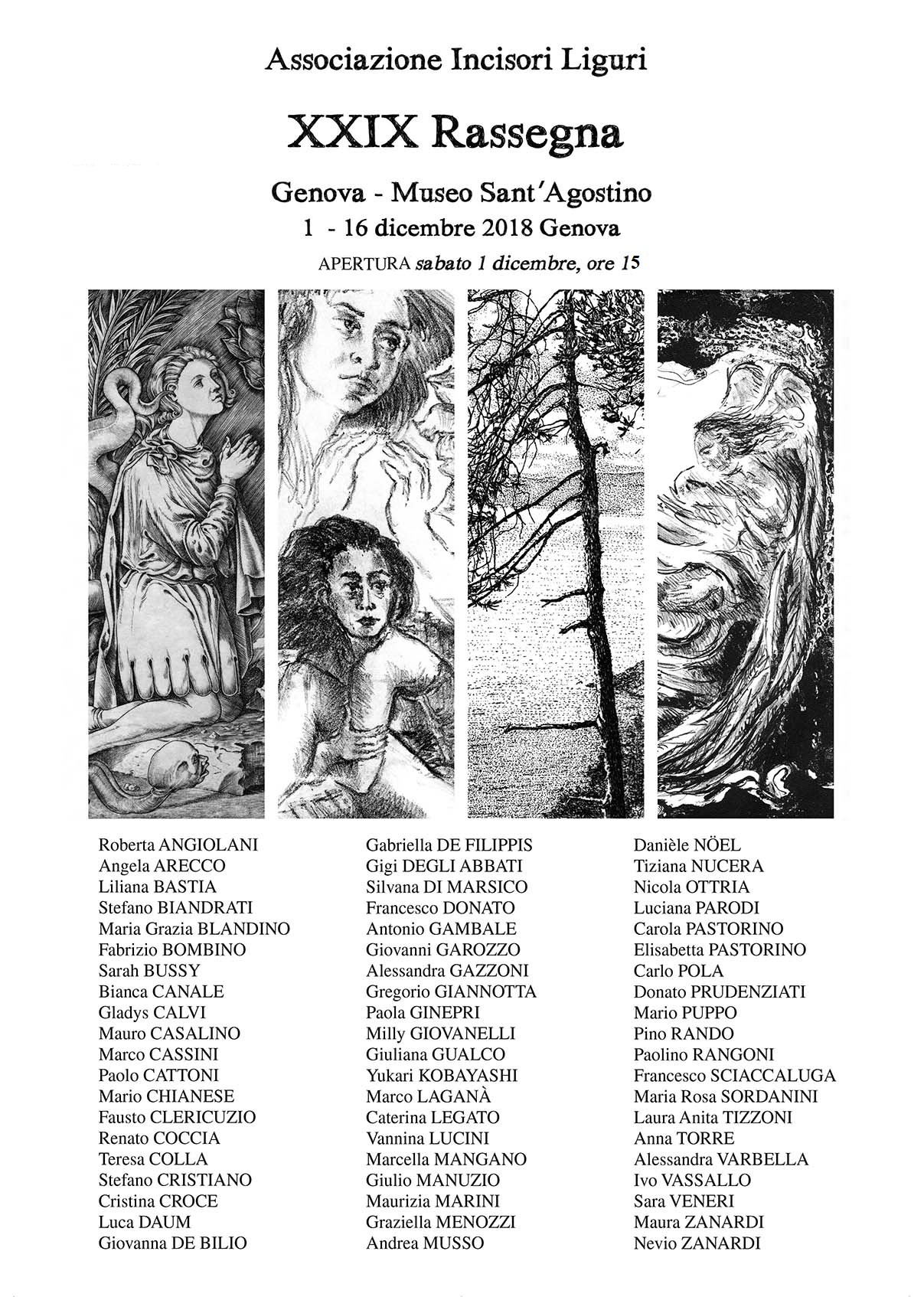 Come ogni anno l'Associazione degli incisori liguri, che ha come scopo la difesa e la diffusione della cultura dell'incisione tramandando e insegnando le tecniche storiche, organizza al Museo di Sant'Agostino una esposizione.