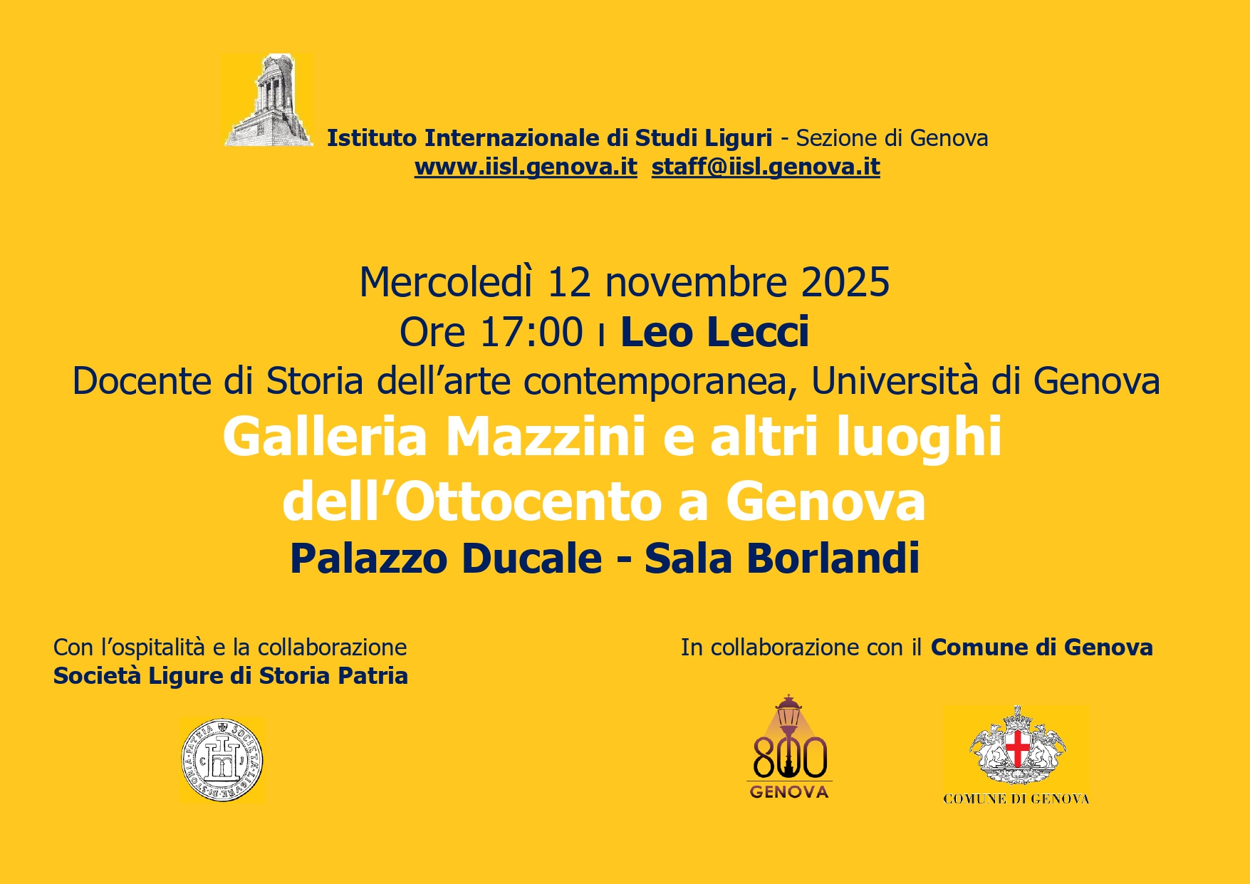 A cura di Istituto Internazionale di Studi Liguri – Sezione di Genova, in collaborazione con la Società Ligure di Storia Patria