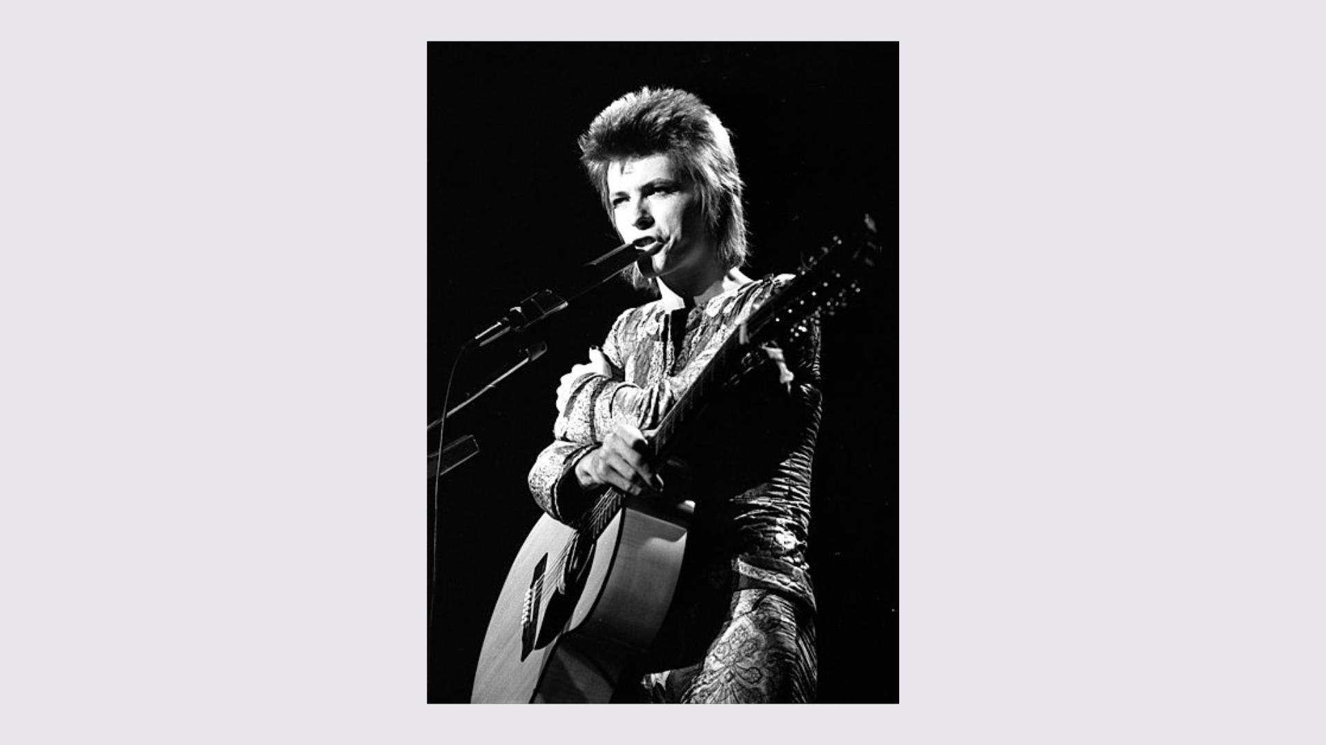 Immagine da Wikipedia Creative Commons: David Bowie, as Ziggy Stardust, performing at the Santa Monica Civic Auditorium.jpg