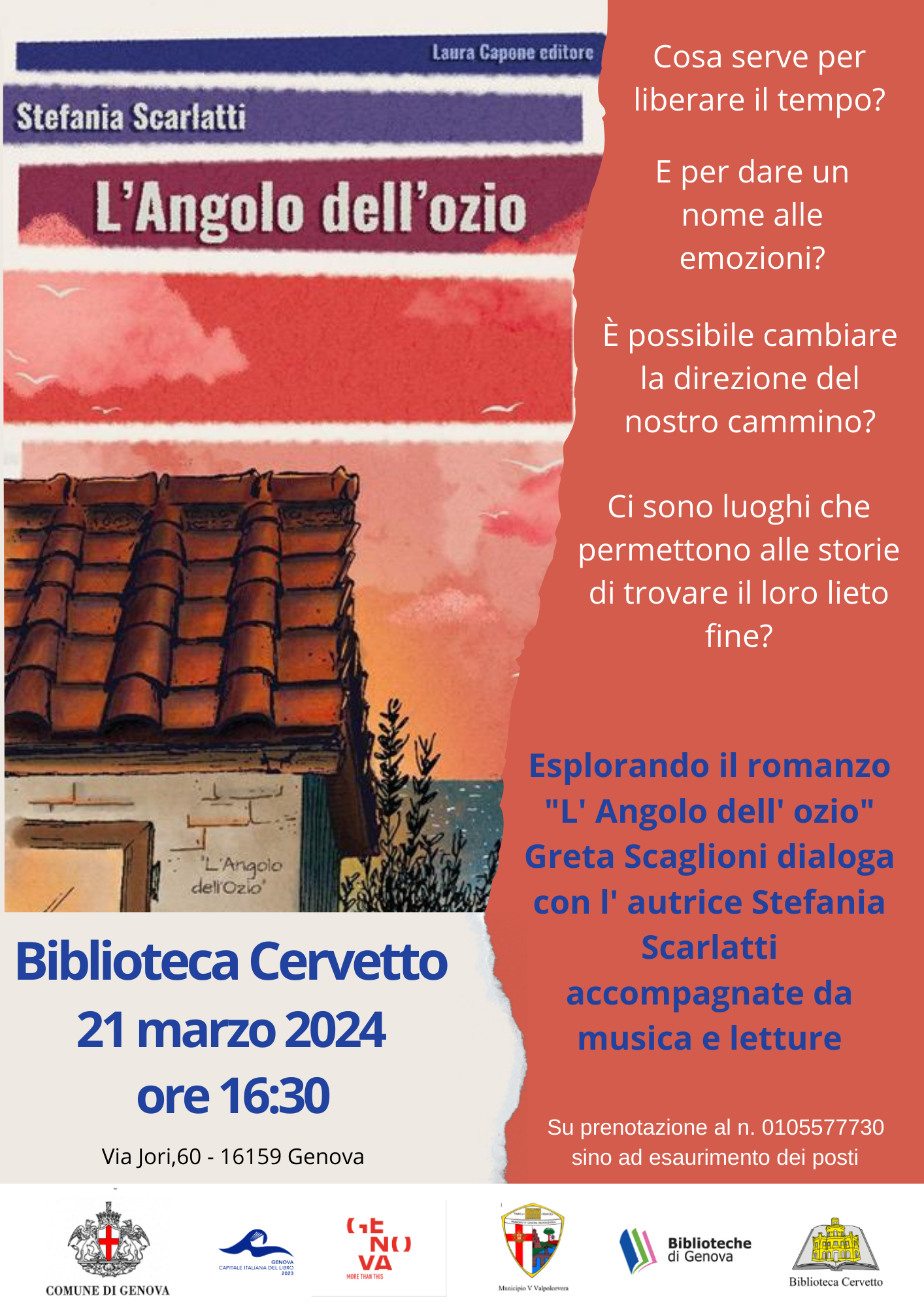 Esplorando il romanzo "L' Angolo dell' ozio" Greta Scaglioni dialoga con l' autrice Stefania Scarlatti