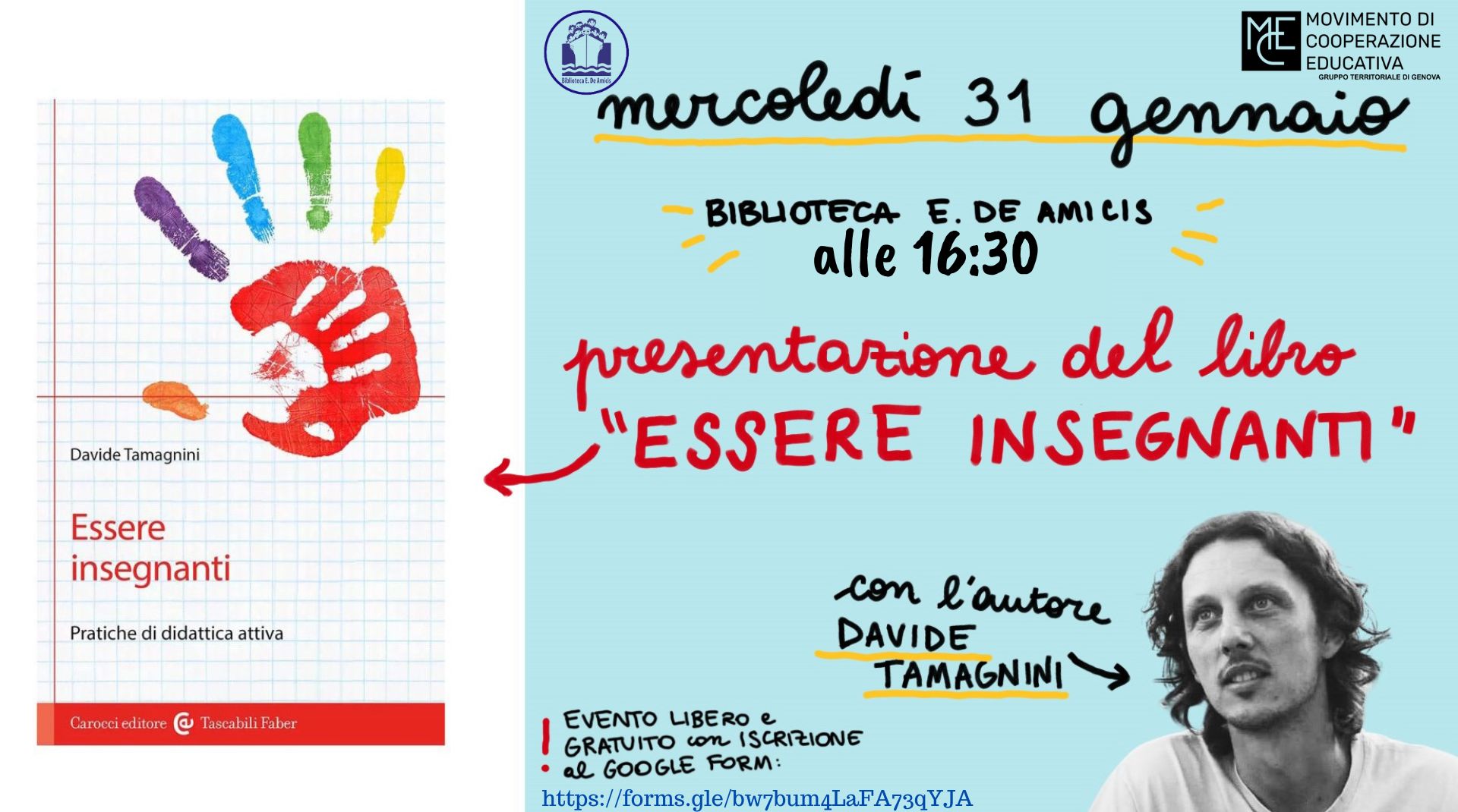 Il Movimento di Cooperazione Educativa organizza e promuove in collaborazione con la Biblioteca De Amicis la presentazione del volume Essere insegnanti - Pratiche di didattica attiva di Davide Tamagnini (Carocci, 2023).