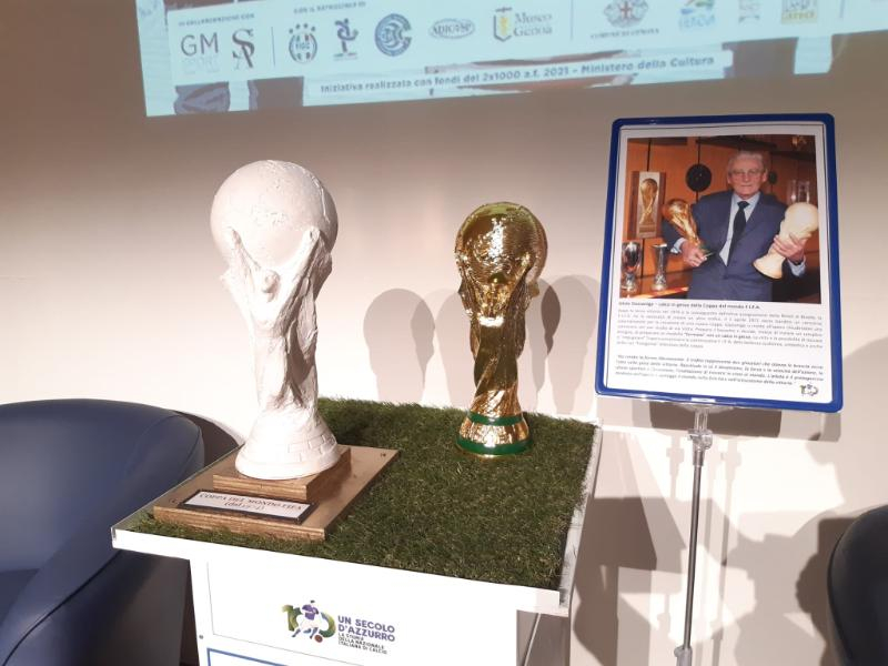 Solo, giovedì 8 febbraio, in occasione dell’inaugurazione, si possono ammirare la Coppa Duca degli Abruzzi, vinta dal Genoa nel primo campionato italiano nel 1898 riconosciuto dalla FIF, concessa dal Museo del Genoa e dalla Fondazione Genoa, e il calco originale della Coppa del mondo realizzato dallo scultore Silvio Gazzaniga nel 1973.