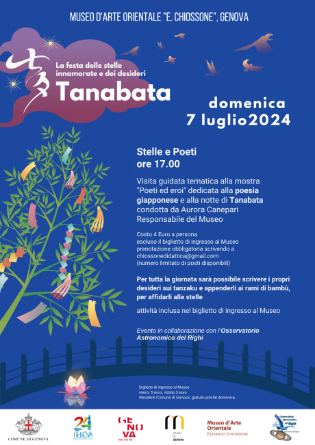 In occasione della festa giapponese di Tanabata 七夕, che celebra le stelle innamorate e i desideri, il Museo d’Arte Orientale Edoardo Chiossone propone: Stelle e Poeti.