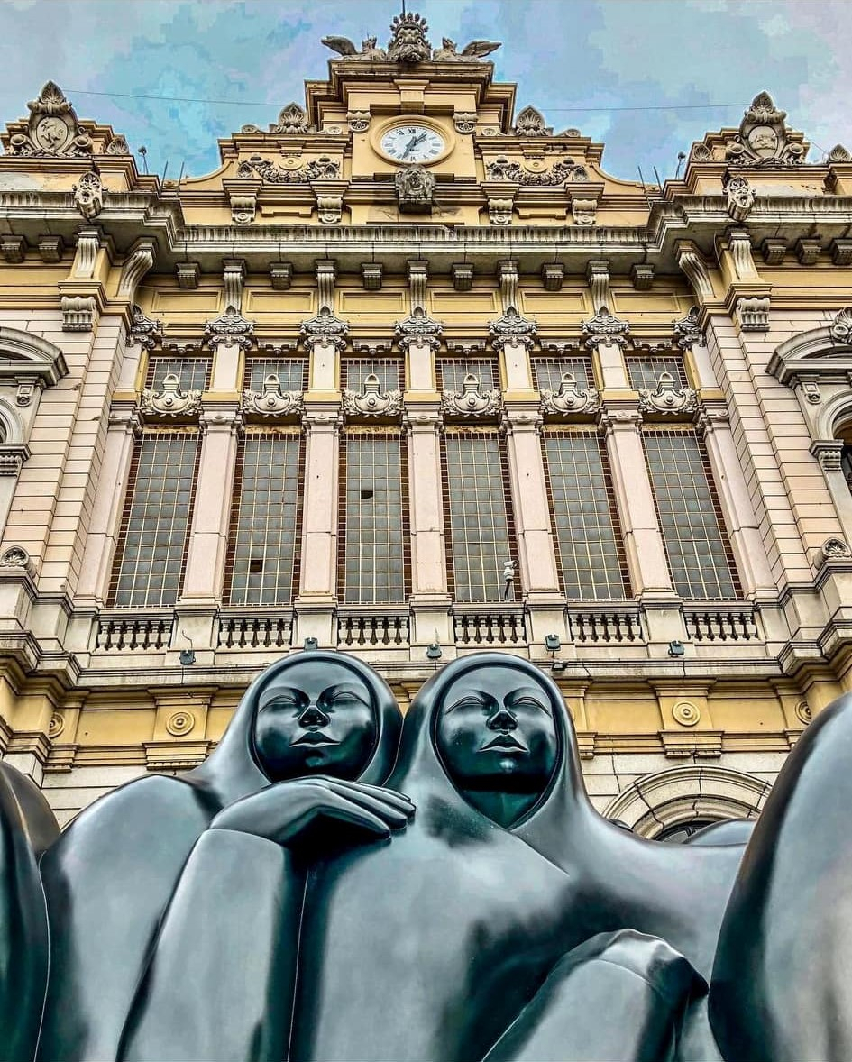 Le dimensioni circolari e ovali ricorrenti nel suo immaginario vi accompagnano in un percorso fluido e armonico che parte dalla stazione di Genova Brignole. Fermatevi per un momento prima di entrare ed essere riportati alla realtà dal fischio dei treni per ammirare Pareja, questa coppia bronzea morbidamente unita in un abbraccio che riposa silenziosa davanti alle alte vetrate della stazione.