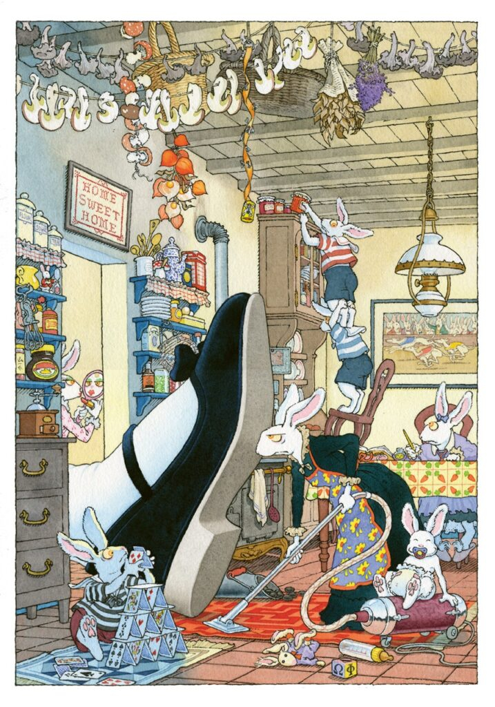 La seconda sezione ospita una mostra interamente dedicata all’ospite d’onore Gilles Bachelet, dal titolo “Funghi, carote e altri animali”, con circa 150 opere che ripercorrono 50 anni di carriera dell’artista. Il percorso espositivo inizia con alcuni disegni degli anni giovanili. In seguito, sono esposte le illustrazioni di inizio carriera, quando Bachelet lavorava per l’editoria periodica francese, con magazine quali Marie Claire, Okapi, Elle. Si prosegue poi con numerose opere disegnate per i suoi straordinari albi illustrati – quali Il mio gatto è proprio matto, Napoleon Champignon, Il cavaliere Panciaterra, La signora Coniglio Bianco, Una vacanza da Unicorni – contraddistinti da tavole ad acquerello ricche di dettagli e immancabile umorismo e ironia.