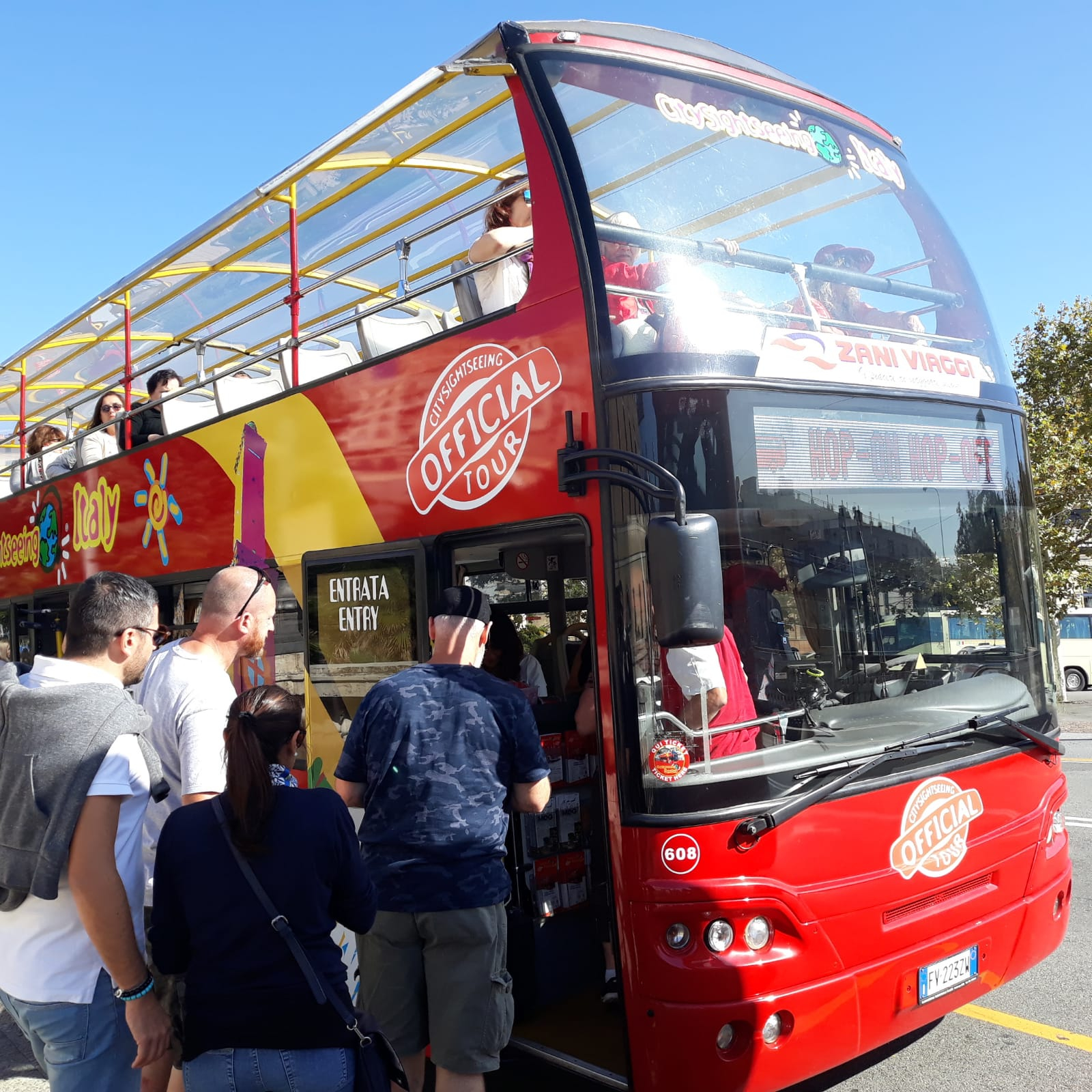 Обзорная экскурсия на двухэтажном автобусе. Предусмотрен аудиогид на 6 языках: итальянском, английском, французском, немецком, испанском, русском. На борту имеются два аудиогида для детей на итальянском или английском языках.